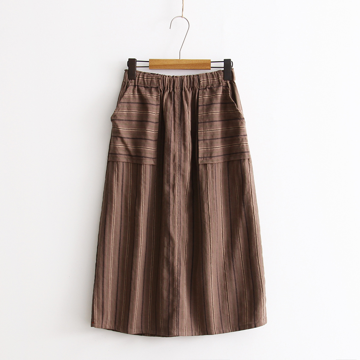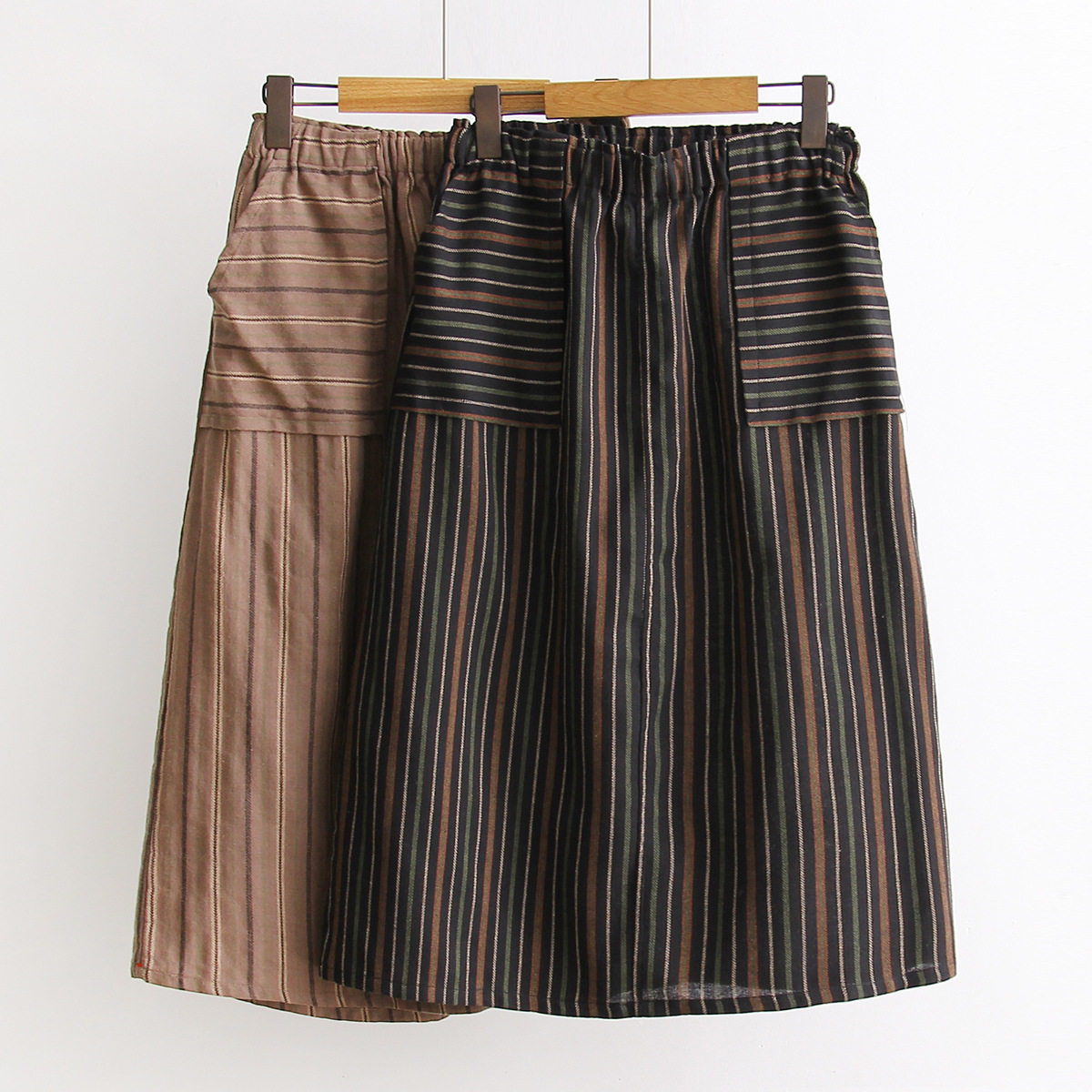 S9539 春夏新款女裝森女百搭松緊腰條紋女裙子半身裙寬松大碼長裙